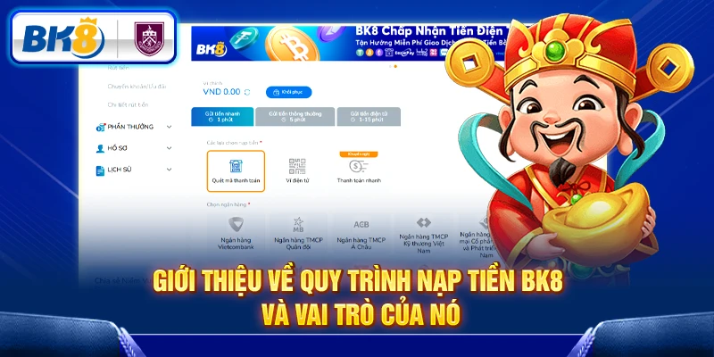 Khi muốn bắt đầu trải nghiệm các dịch vụ của Bk8, việc hiểu rõ về các phương thức nạp tiền rút tiền là điều cần thiết để đảm bảo hoạt động của bạn diễn ra suôn sẻ. Bk8 cung cấp nhiều kênh thanh toán khác nhau phù hợp với từng nhu cầu và khả năng của người chơi.